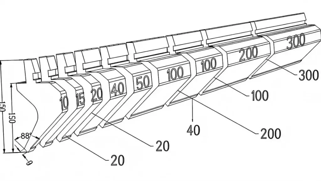 Integral punches support high stability and quick setup. Common integral lengths are 415 mm and 835 mm. Split punches add flexibility for short flanges and complex parts. Typical split segments include 10, 15, 20, 40, 50, 100 (left horn), 100 (right horn), 200, et 300 mm. You can combine segments to match the bending length and avoid gaps.