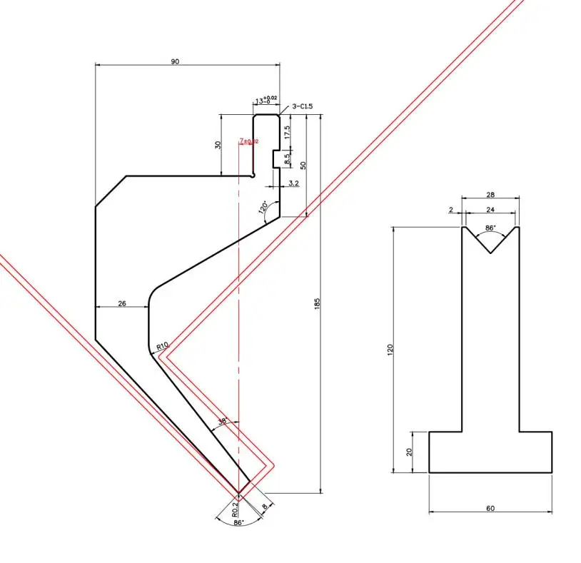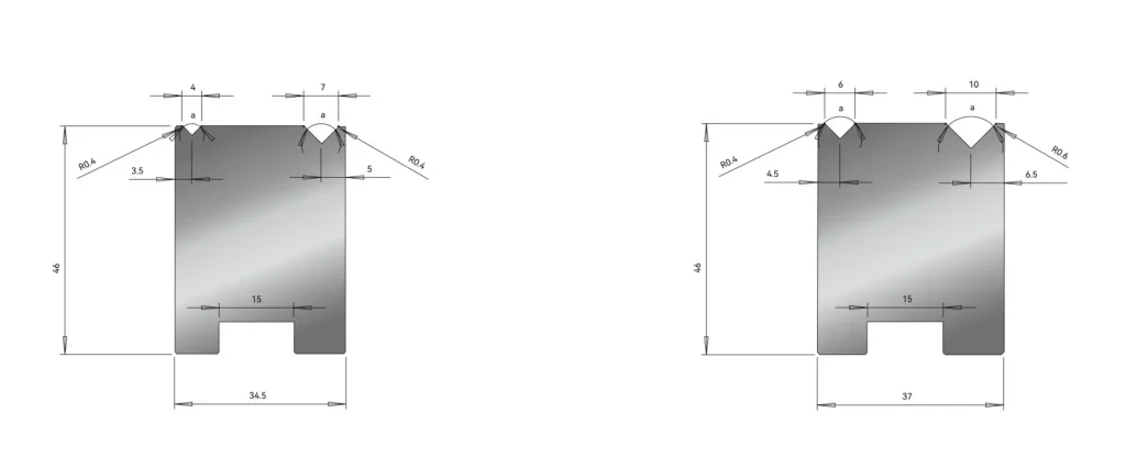 Choosing the right die determines tonnage, springback control, and inside radius quality. For CNC Press Brake for Metal Fabrication, select V-grooves by thickness, material strength, and the radius needed. Go-to V openings are 4V, 6V, 7V, 8V, 10V, 12V, 16V, and 25V. Dies are typically 26 mm or 46 mm tall, affecting daylight, clearance, and backgauge range. Insert deep dies with 4V, 6V, 8V, et 12 grooves allow acute angles from 30° to 180° while preserving surface quality.