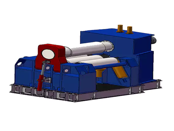 Inclut un Système d’équilibrage hydraulique pour les rouleaux latéraux et un Système de serrage à barre en coin sur le rouleau du bas, Assurer un fonctionnement stable sous charge.